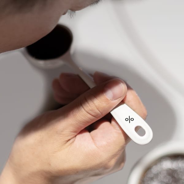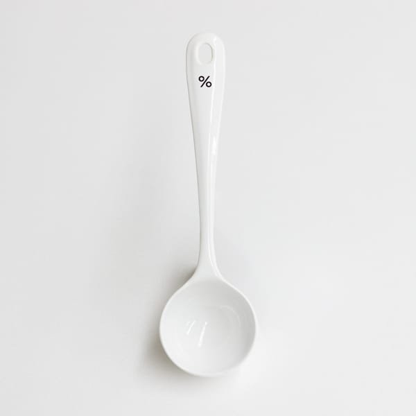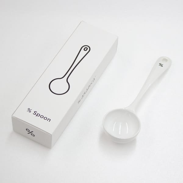 Here is the new % Spoon for scooping coffee beans and ground coffee from your container at home. Made in Japan from the same enamel material as % Canisters, this spoon’s shape is so perfect for scooping coffee beans that it will make you smile every time you use it. % Spoon is also suitable for coffee cupping.